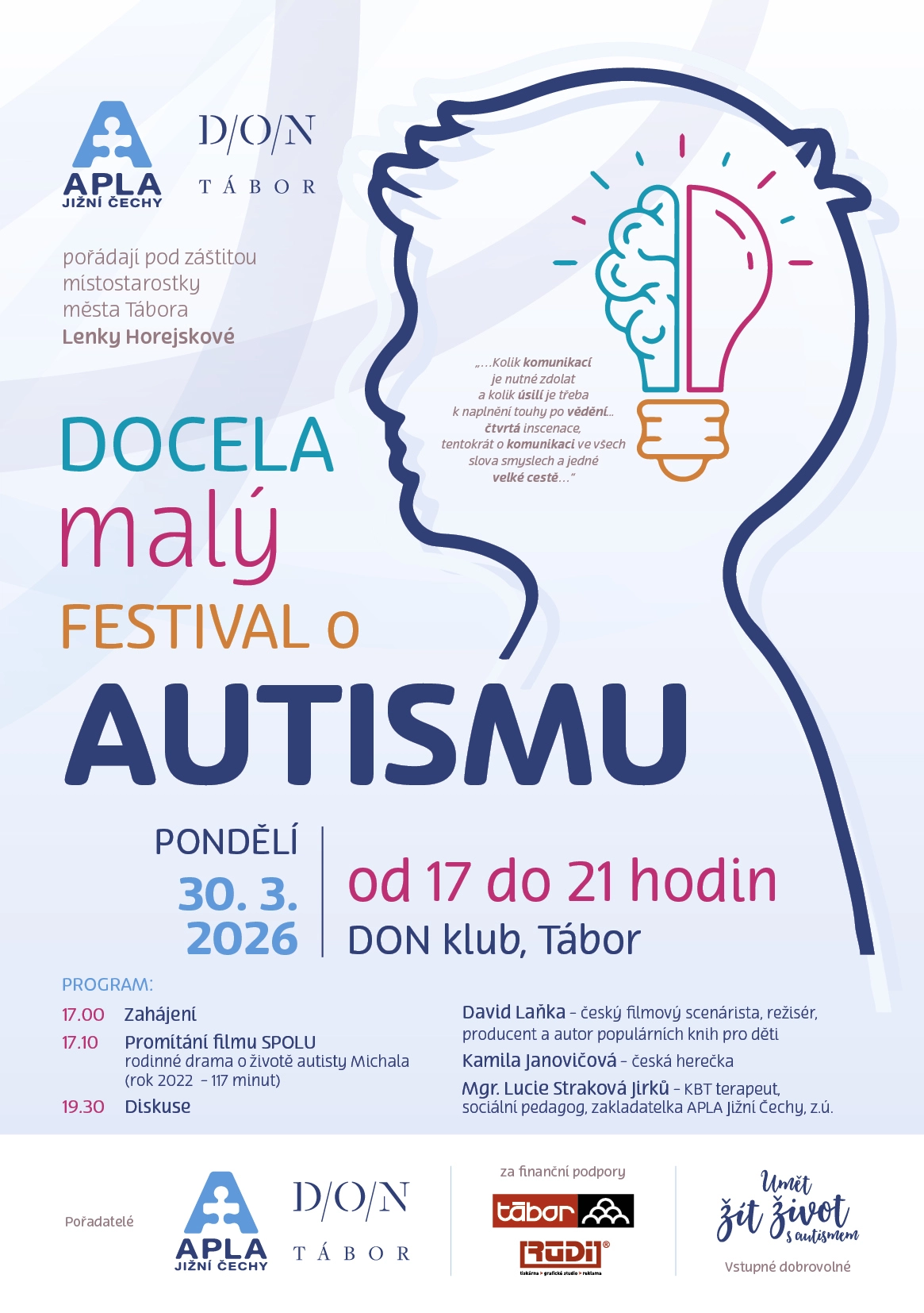 Zveme vás na komorní festival věnovaný autismu, životním příběhům a společnému dialogu. Čeká nás společné promítání filmu a následná diskuze s opravdu hvězdným obsazením. Přijďte se podívat, zaposlouchat a zapojit do debaty.